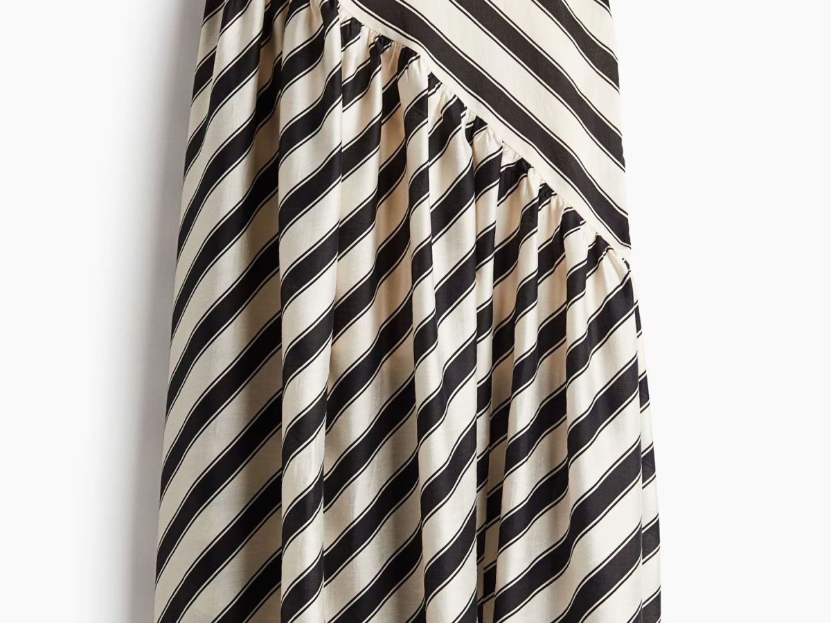 “For petites, a soft diagonal hem that shows a little shin can really elongate the leg,” says Sheridan-Taylor says. “Pair it with strappy sandals and a tucked-in top to define the waist.”