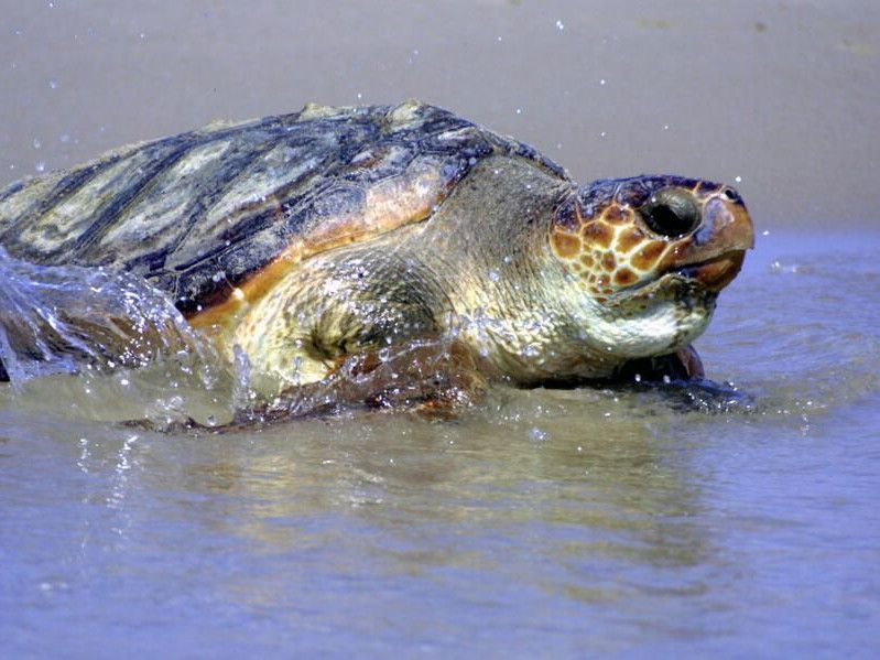 Esta tortuga Boba es muy lista . Ha elegido la playa de Benidorm, el mejor sitio para desovar.