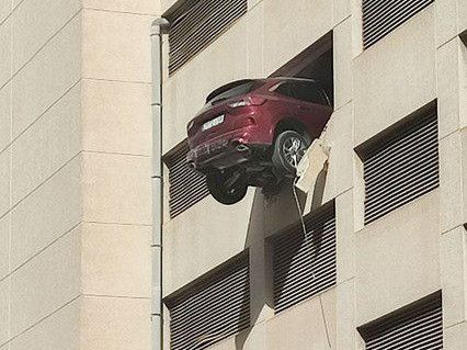Rompe el muro y deja suspendido medio coche en el tercer piso de un aparcamiento en Ibiza.https://t.co/fOHTKepakS pic.twitter.com/6xZBJ8LxPW