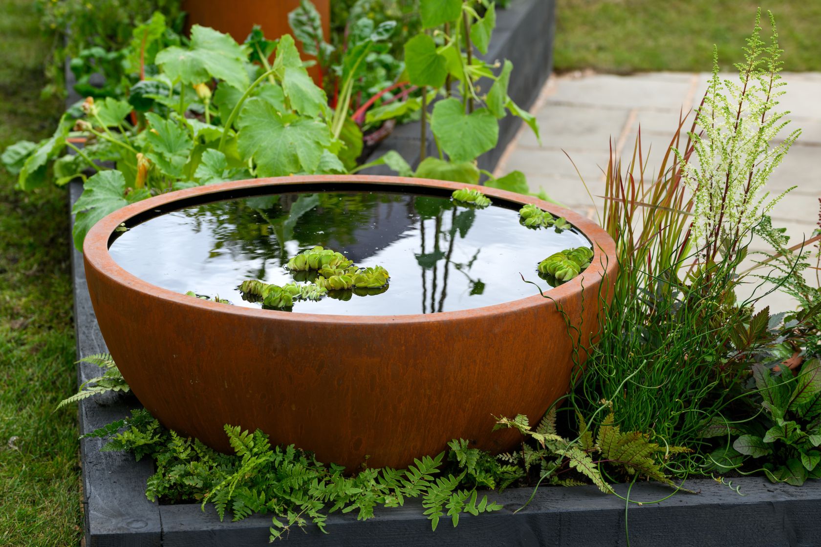 “You can also use it as an opportunity to create colour and interest in your garden, with all sorts of aquatic species which can be used in a very small body of water, such as dwarf water lilies, or small version of plants.”