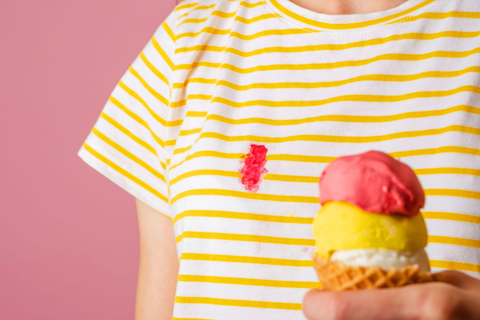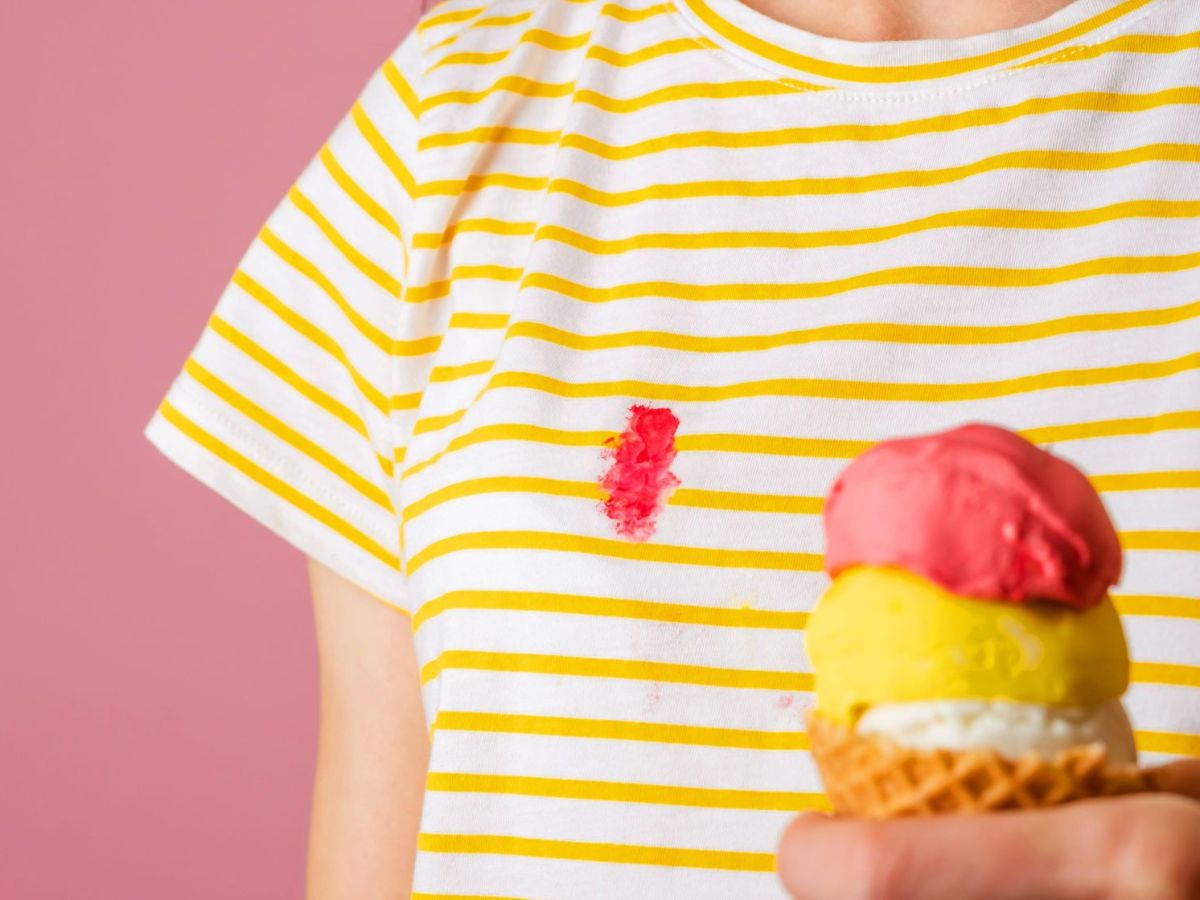 "Eiscremeflecken lassen sich auch unterwegs beseitigen, wenn Sie antibakterielle Tücher oder ein praktisches Reinigungsset für die Handtasche dabei haben", empfiehlt Crombie.