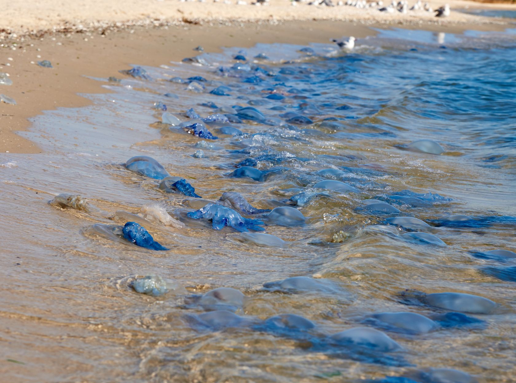 La razón del aumento del número de medusas se atribuye a la subida de la temperatura del agua, combinada con las rachas de viento que han llevado a las medusas a las playas.