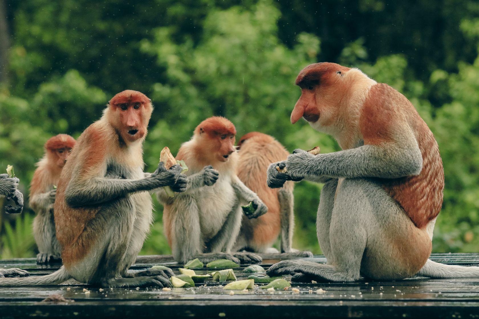 La palabra "probóscide" viene del griego y designa la trompa de un elefante, proboskis, que se traduce como "medio para coger comida". Para no ponerme demasiado técnico, las moscas y otros insectos también pueden tener probóscide, pero conviene saber que en realidad no son verdaderas narices, sino parte de sus bocas. Puede parecer difícil de creer, pero los monos probóscide macho utilizan sus narices carnosas y colgantes para atraer a "las chicas". Los científicos creen que estas narices tan grandes también crean una cámara de eco que amplifica la llamada del mono -un poco como un bocinazo-, impresionando a las hembras e intimidando a los machos rivales, y el macho comunicará el estatus de su grupo con bocinazos, con diferentes "bocinazos" para sus crías o una llamada de amenaza.