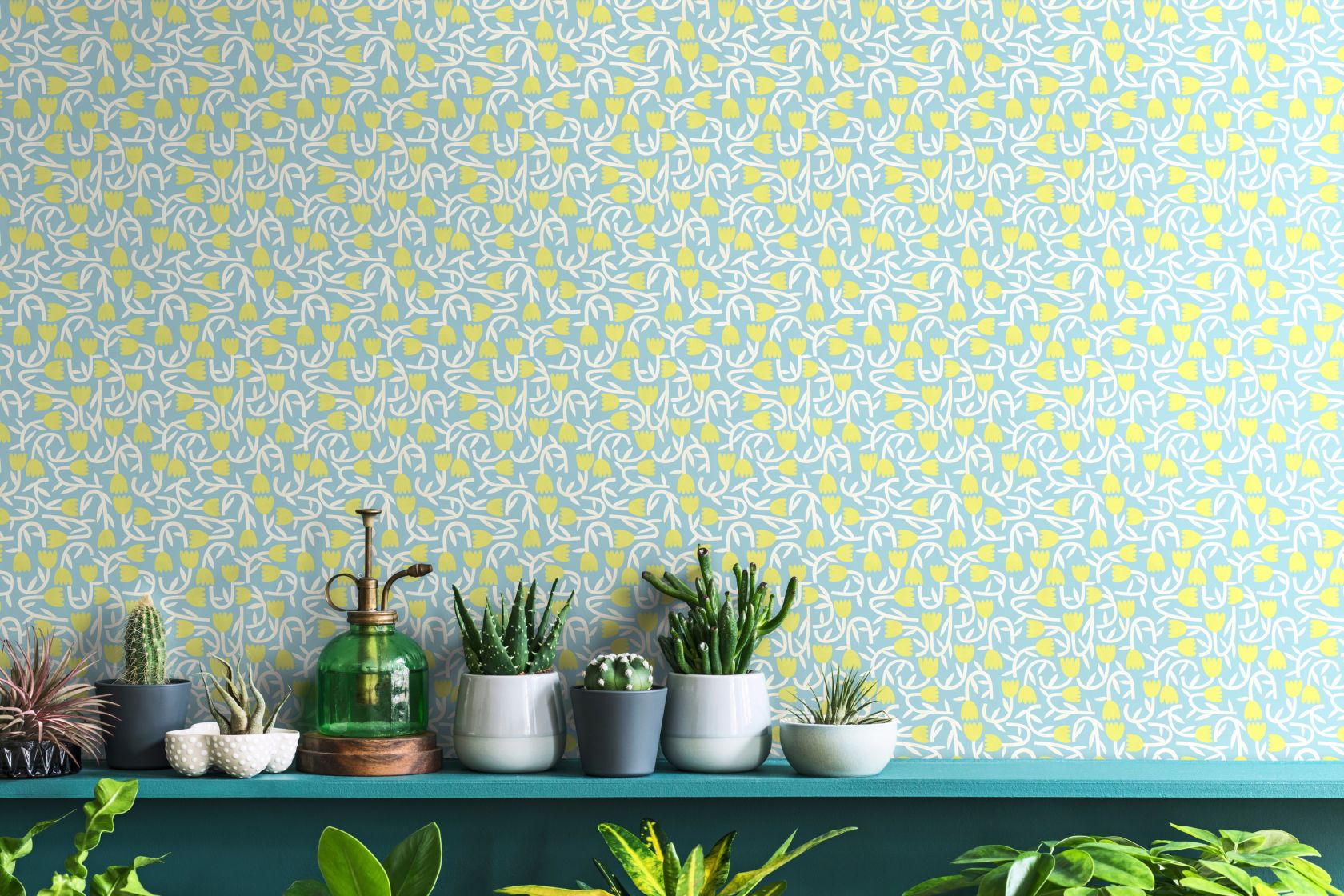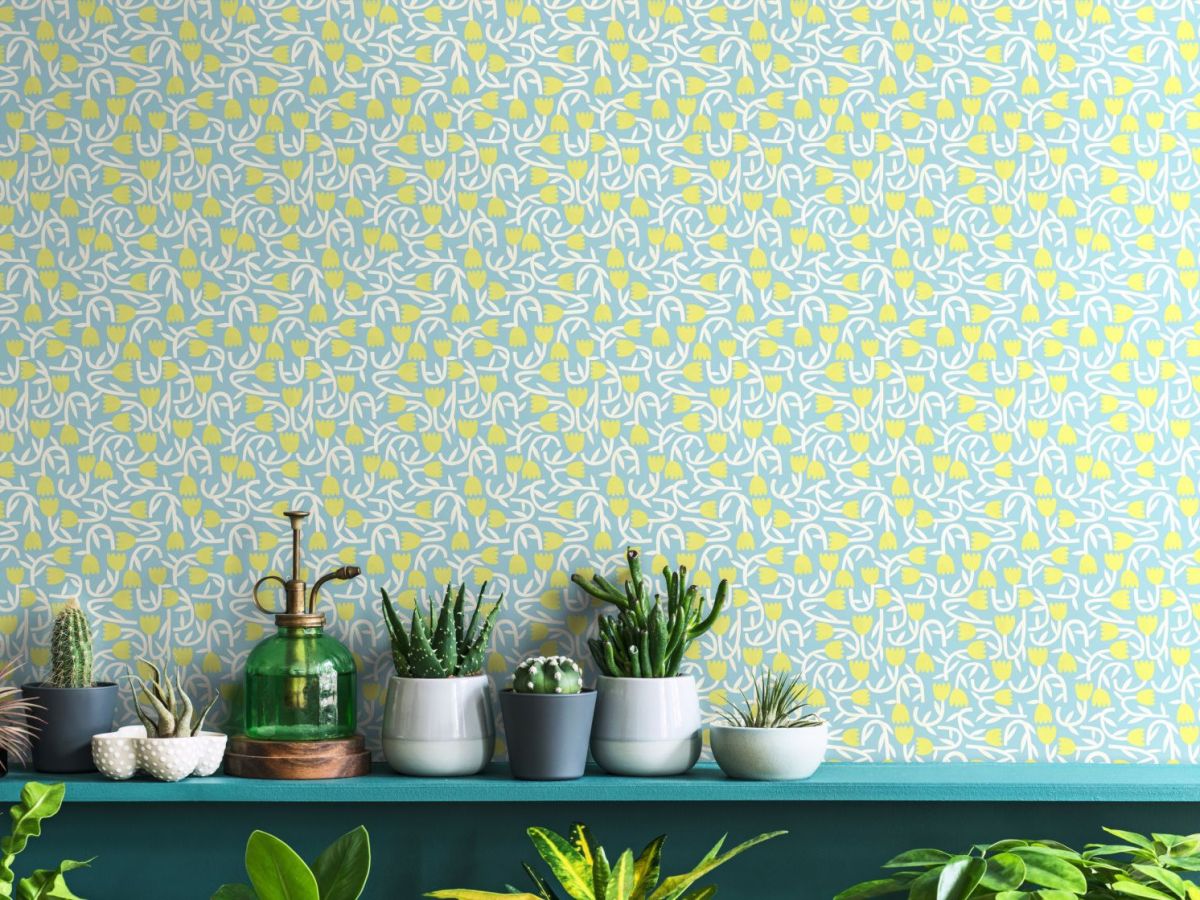 Altrimenti, pensiamo a una stampa botanica luminosa con foglie lussureggianti ed erbe ondeggianti per rendere più vivace la vostra tavolozza.