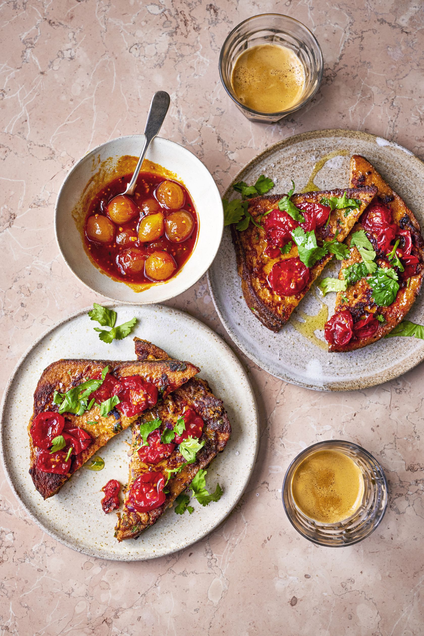 Pomodori ciliegini arrostiti, coriandolo fresco tritato grossolanamente