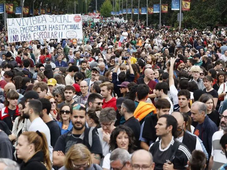 The Madrid demonstration left from the Atocha roundabout and ended in Plaza de España, marching through the city’s major streets and avenues with a banner reading “Let’s put an end to the housing business”.