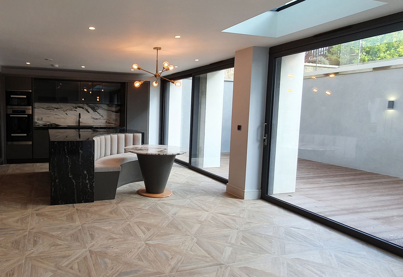 “Integrating a terrace or patio, with large windows, bi-folds or French doors are not just popular options, they provide a seamless transition between spaces,” highlights Grossman.