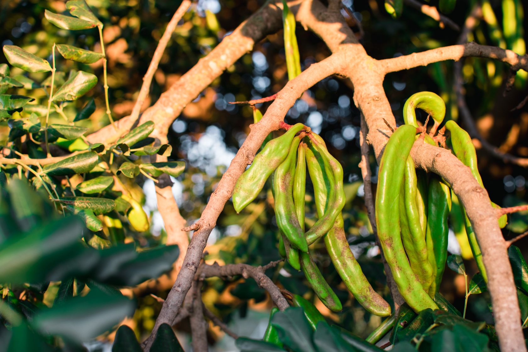 When ripened they are dark brown, and although they will fall to the ground naturally, farmers and homeowners alike can be seen coaxing their crop of carobs from the trees - traditionally farmers will be seen spreading a huge sheet on the ground to catch them while a beater bashes the tree with a pole to shake down the ones higher up. The crop will be collected, sometimes with the whole family involved in ‘picking and packing’, with harvesting beginning early in the morning and probably going on all day until every pod is down and bagged up for sale.