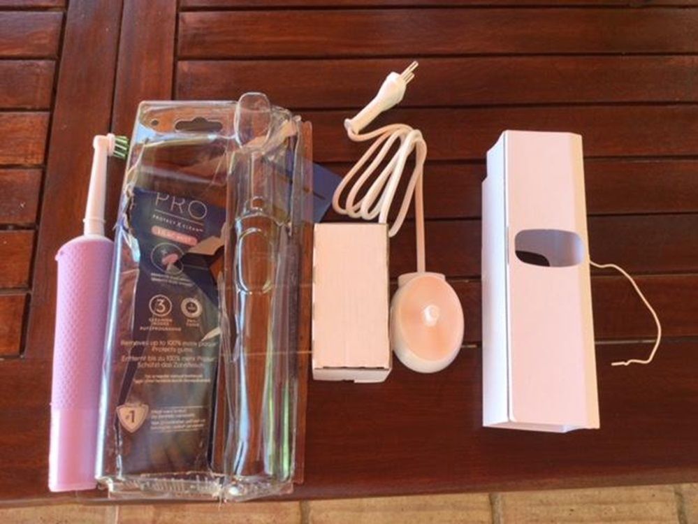 Take a look at the picture of the product and of all packaging used; I thought these days we were supposed to be using less of everything. There was the plastic ‘clamshell’ thing, two card boxes, another piece of card with all the sales blurb on it, a closing wire (that was around the cord of the charger), a tiny paper guarantee, and the two things I was after, the toothbrush and the charger.